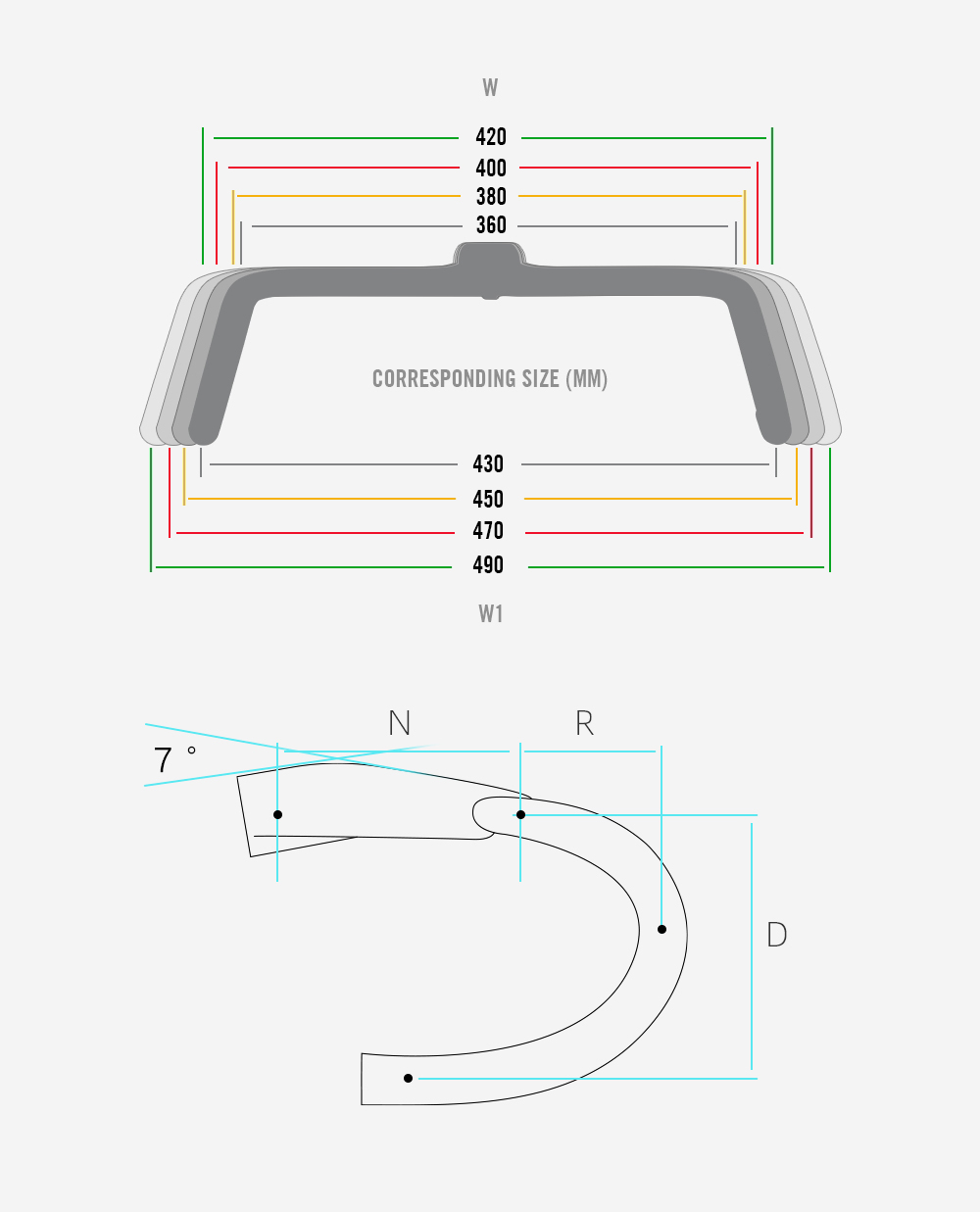 The handles are available in the following sizes. Please note the size of the bending handles when ordering.