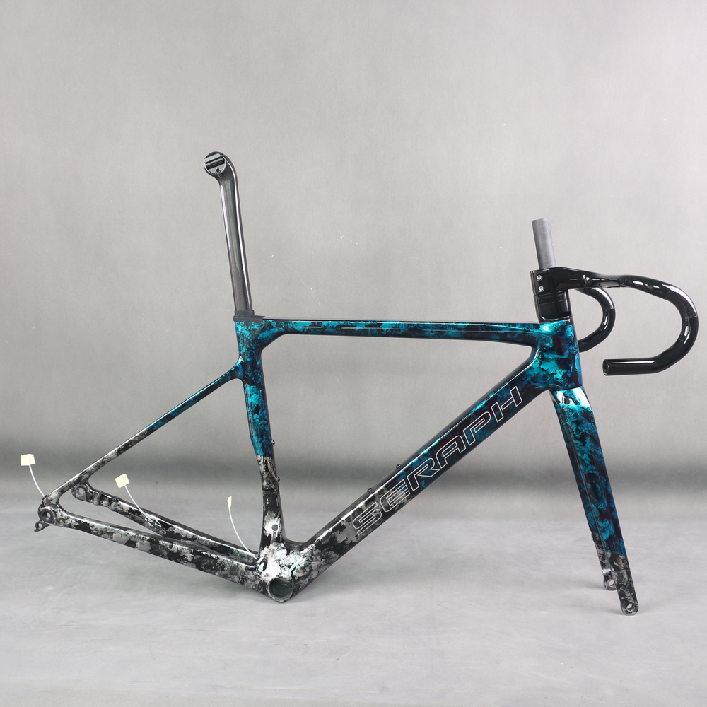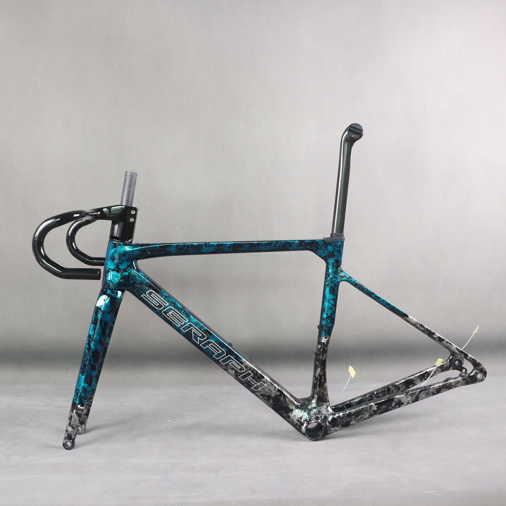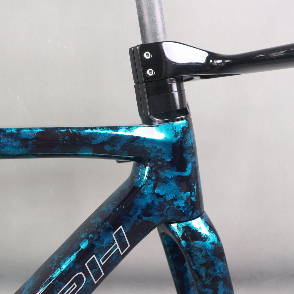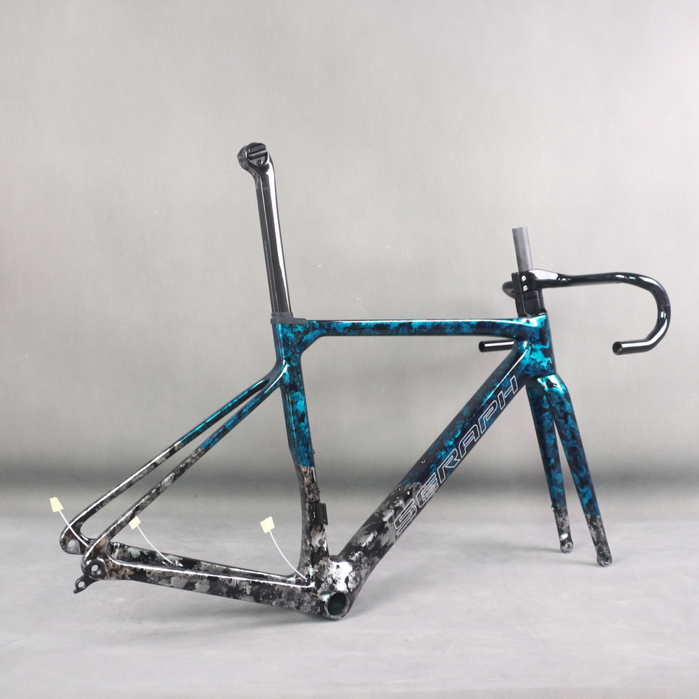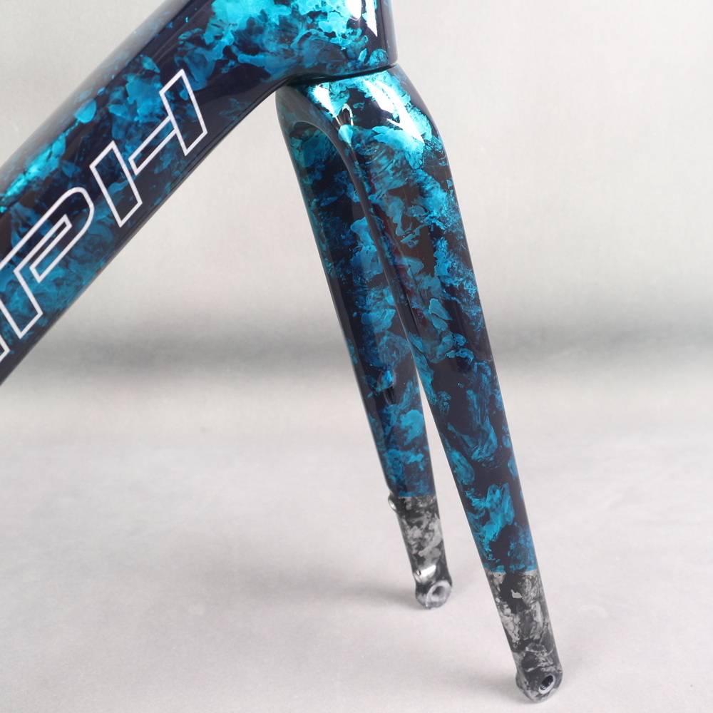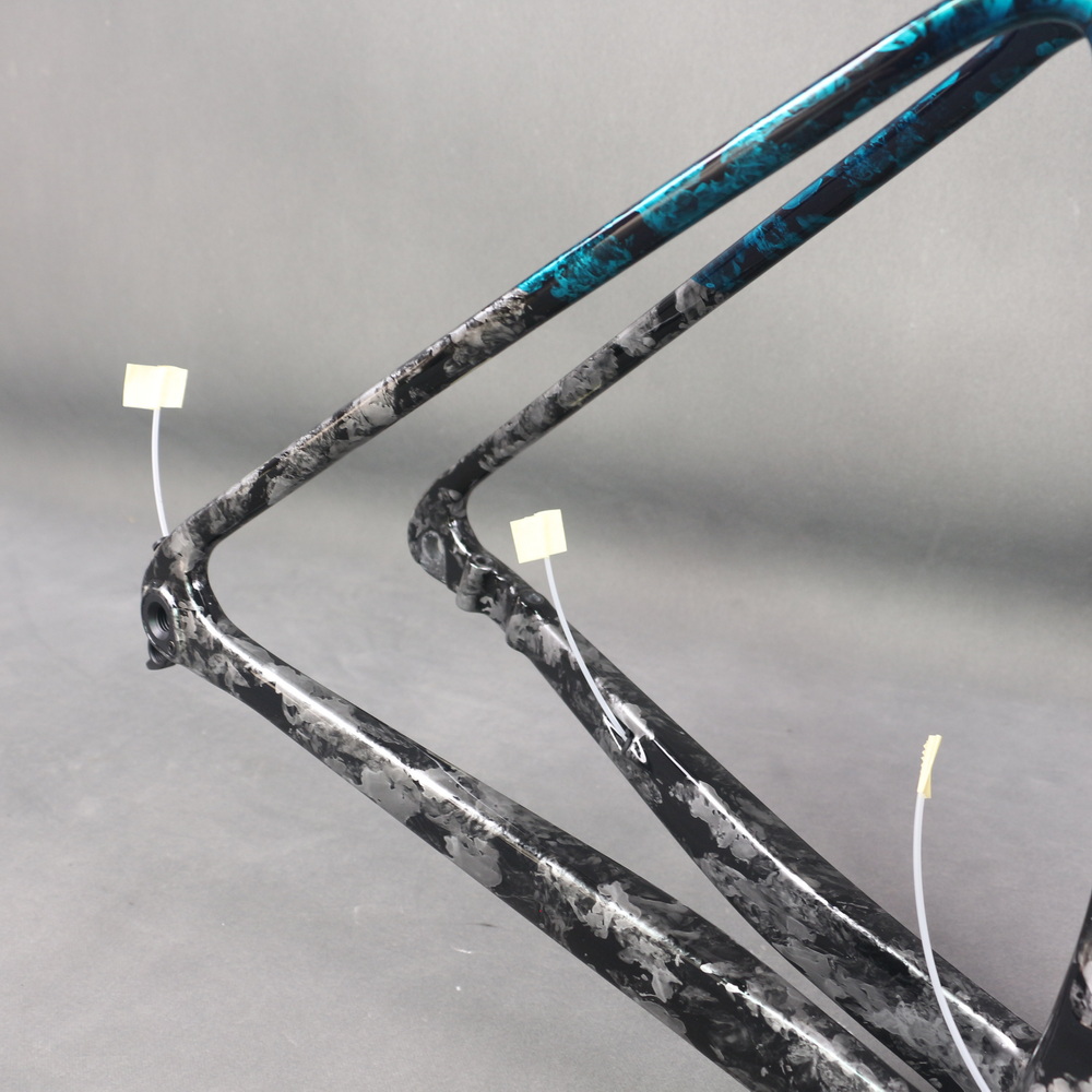 Full Toray T1100 Super Light Disc Road Bike Frame FM025 Hidden Cable Blue Gray Water Ripple Paint Max Tire 700X32C
