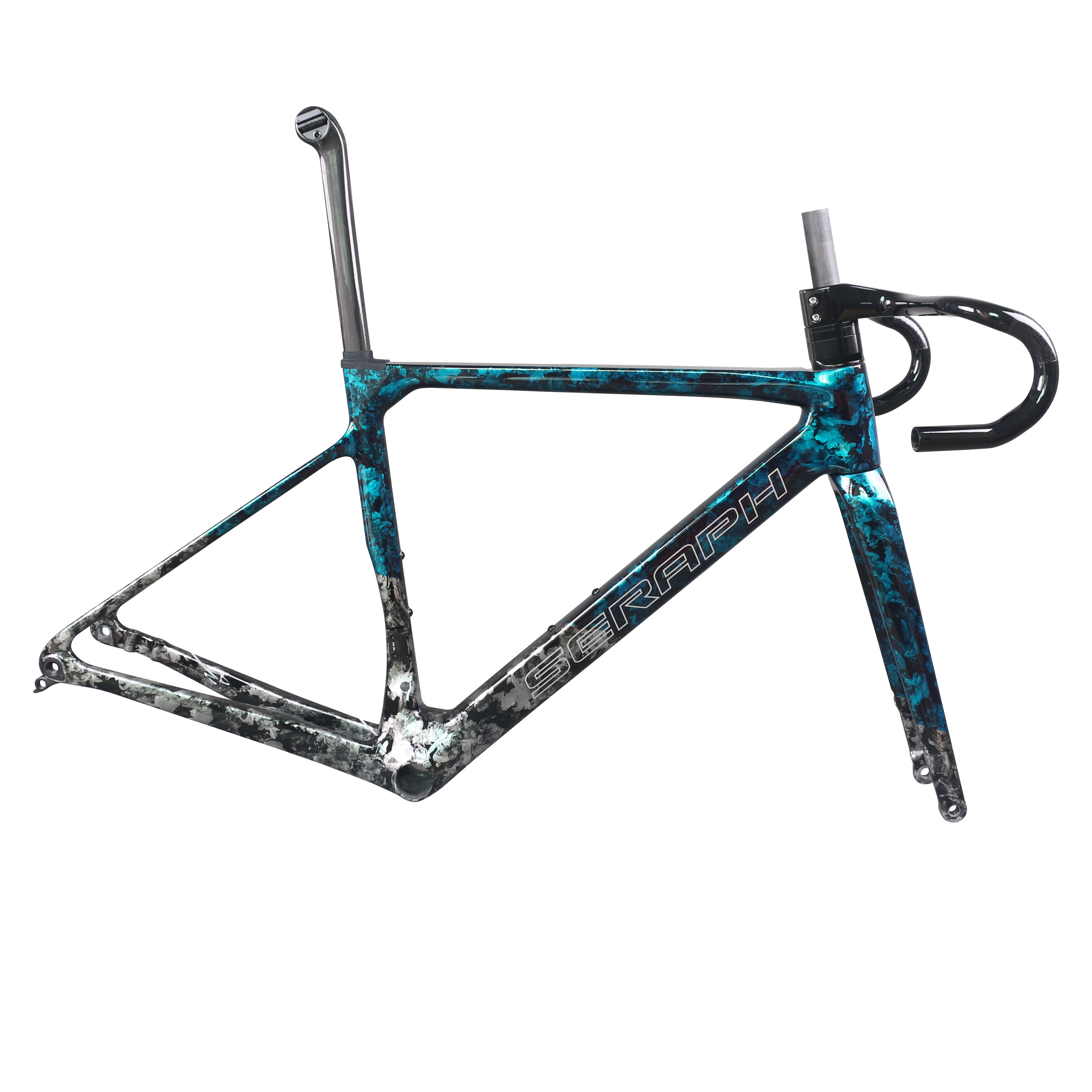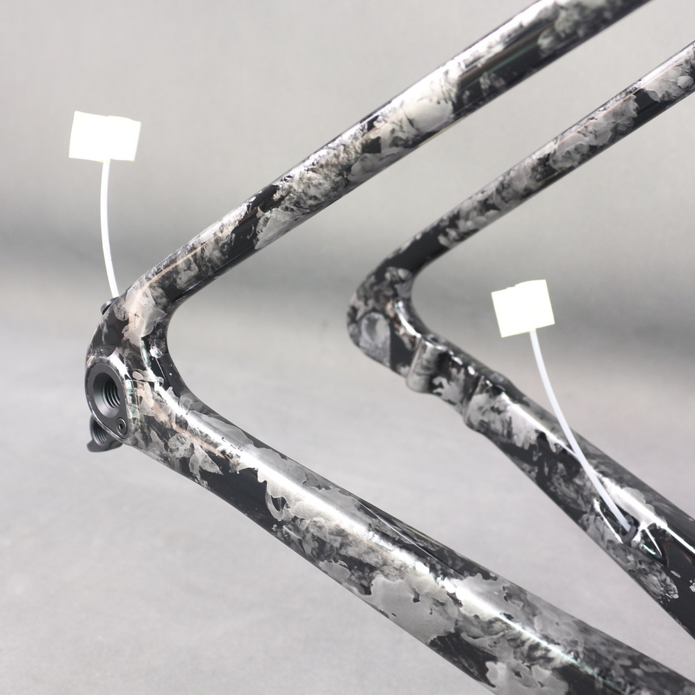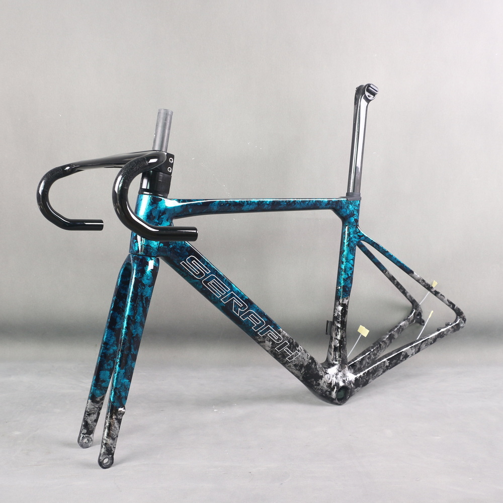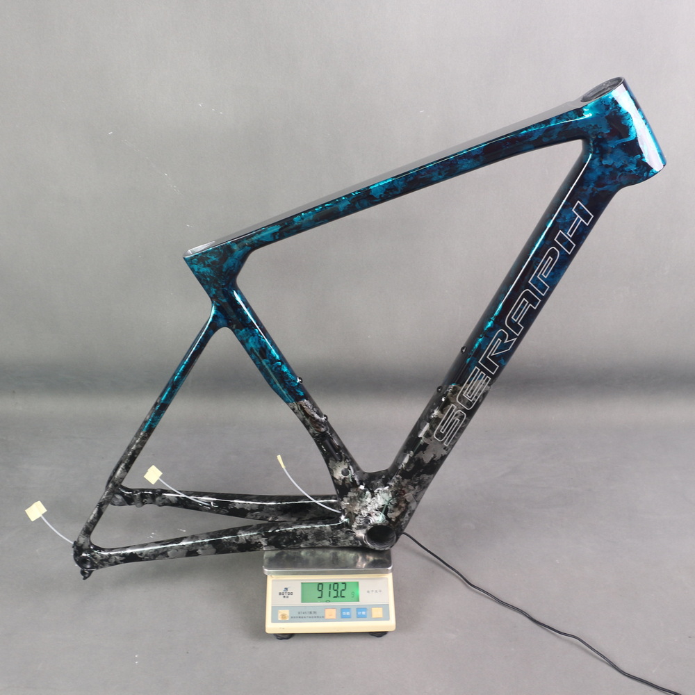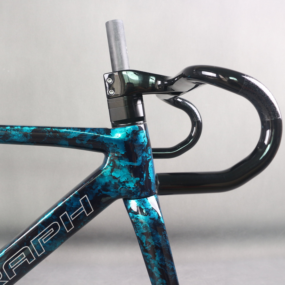 Full Toray T1100 Super Light Disc Road Bike Frame FM025 Hidden Cable Blue Gray Water Ripple Paint Max Tire 700X32C